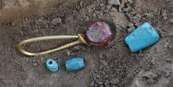 大坨頭文化聚落由內(nèi)、外兩重環(huán)壕圍合,外環(huán)壕直徑142至155米,寬8至12米,圍合面積約1.7萬(wàn)平方米。內(nèi)環(huán)壕直徑70至72米,寬約18米,圍合面積約0.4萬(wàn)平方米。在內(nèi)環(huán)壕內(nèi)、內(nèi)外環(huán)壕之間均發(fā)現(xiàn)有灰坑、窖穴、房址等遺跡。環(huán)壕聚落外東南方向發(fā)現(xiàn)27座豎穴土坑墓葬,布局規(guī)律,墓葬方向一致,部分墓葬還出土了靴形足彩陶尊等彩繪陶器、玉玦、綠松石項(xiàng)鏈、紅瑪瑙串珠、扣針形帶翼喇叭口金耳環(huán)等隨葬品,顯示了墓主較高的地位等級(jí)。穩(wěn)定同位素結(jié)果顯示,新宮遺址人群的食性以粟為主,肉食水平略高于二里頭遺址人群,并且不同等級(jí)墓葬的墓主人之間飲食結(jié)構(gòu)差異不大。該墓地的發(fā)現(xiàn),對(duì)于研究大坨頭文化的時(shí)空范圍、人群與族屬、喪葬習(xí)俗等提供了實(shí)物資料。