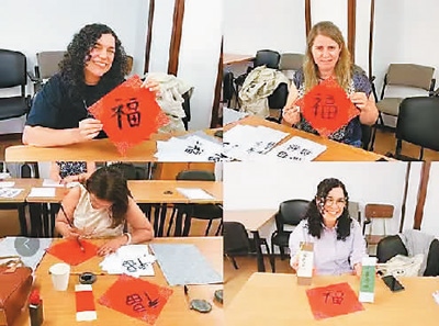 在書法課上,國際中文教師向營員們介紹了中國書法藝術的悠久歷史和文化內(nèi)涵,展示了草書、行書、楷書等不同風格的書法作品,帶領大家從形、神、意等多個維度欣賞作品,領略中國傳統(tǒng)書畫之美。