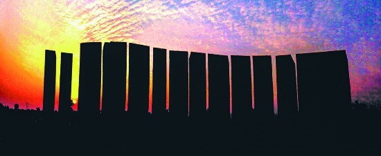 當(dāng)代復(fù)原的陶寺遺址觀象臺。邱小林攝