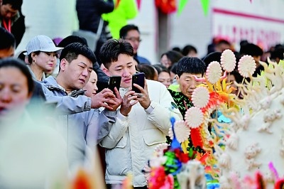 游客拍攝非遺項目面塑的短視頻。新華社記者 詹彥攝