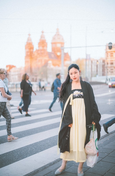 “換成漢服之后,確實感覺到對觀眾的吸引力更強了。從現(xiàn)場演出看,在異國街頭,漢服與古箏的搭配跟周邊環(huán)境形成強烈的反差,可以吸引更多人走近中國傳統(tǒng)服飾、中國傳統(tǒng)音樂。在網絡平臺上,以音樂為載體、以服飾為外觀特點的演奏,能夠讓刷視頻的網友快速從視覺、聽覺上得到美的享受?!迸盱o旋說。