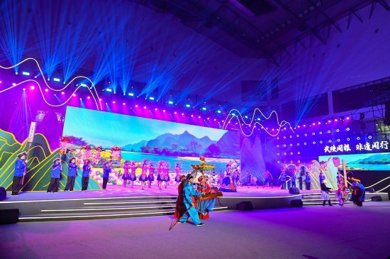 群舞《薅呀薅呀薅》、土家族打溜子《雄雞爭(zhēng)艷》等節(jié)目,以獨(dú)特的民族舞蹈和打擊樂(lè),展現(xiàn)了別具一格的魅力;苗族民歌《嬌阿依》、地花鼓《打扮小郎一支花》等節(jié)目,掀起了最炫民族風(fēng);南劇《唐崖土司夫人》片段等節(jié)目,體現(xiàn)了武陵山區(qū)的深厚藝術(shù)底蘊(yùn)。來(lái)自宜昌、恩施、湘西和重慶等地的演員們,更是聯(lián)手獻(xiàn)上了《日子越過(guò)越敞亮》,展現(xiàn)出武陵山區(qū)各民族同根同源、文化交融的深厚情感,以及勾勒出這片土地上繁榮興旺、和諧共生的美好畫(huà)卷。