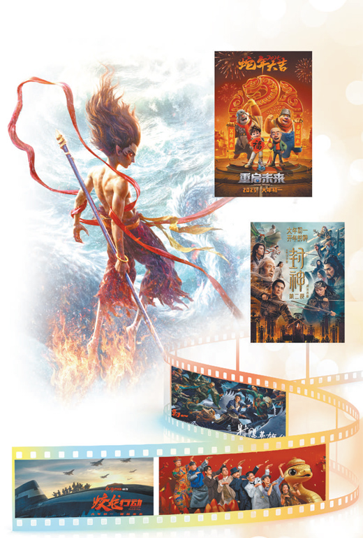 《哪吒之魔童鬧海》《唐探1900》《熊出沒(méi)·重啟未來(lái)》《蛟龍行動(dòng)》《封神第二部:戰(zhàn)火西岐》《射雕英雄傳:俠之大者》等6部影片同步上映,2025年春節(jié)檔被稱為“最強(qiáng)春節(jié)檔”。家國(guó)情懷、傳統(tǒng)文化、IP電影、電影工業(yè)化等成為這個(gè)春節(jié)檔的關(guān)鍵詞。