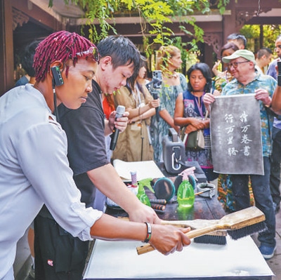 “只見黃鶯亂囀,人蹤悄悄,芳草芊芊。粉壞樓墻,苔痕綠上花磚……”新任北京生態(tài)環(huán)境公益大使、北方昆曲劇院藝術(shù)家邵天帥用優(yōu)美動聽的昆曲表演了《桃花扇》。她表示,作為北京市民,今后要用昆曲藝術(shù)展現(xiàn)好北京生態(tài)環(huán)境日新月異的變化,讓子孫后代能在昆腔雅韻里聽見綠色北京。