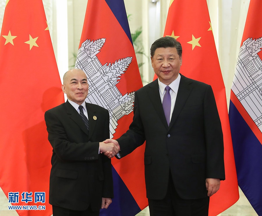 國(guó)家主席習(xí)近平14日在人民大會(huì)堂會(huì)見(jiàn)柬埔寨國(guó)王西哈莫尼。
