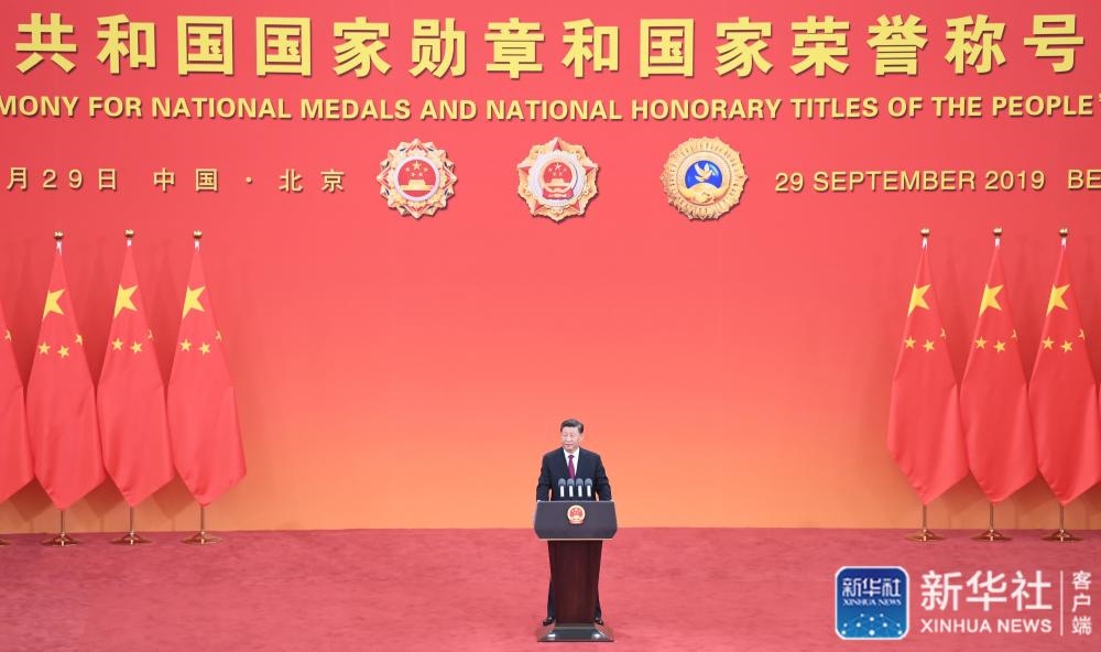 習(xí)近平向國(guó)家勛章和國(guó)家榮譽(yù)稱號(hào)獲得者頒授勛章獎(jiǎng)?wù)虏l(fā)表重要講話