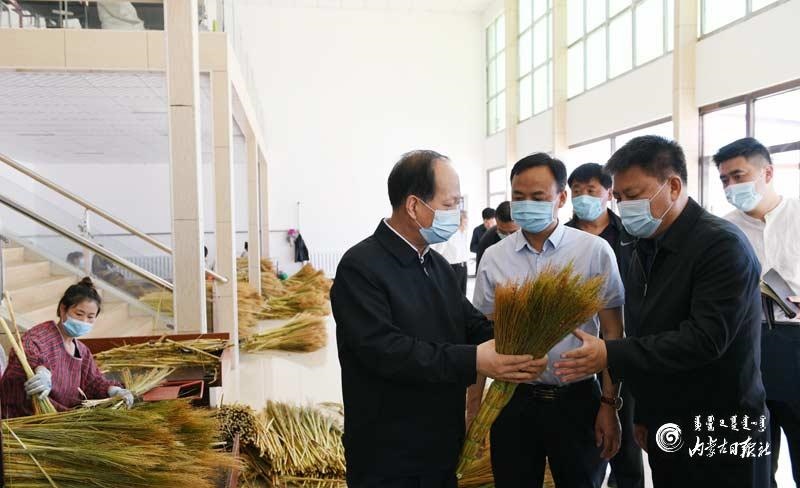 6月2日,自治區(qū)黨委書記、人大常委會(huì)主任石泰峰在赤峰市巴林左旗十三敖包鎮(zhèn)洞山村豐華笤帚制品有限公司,調(diào)研生產(chǎn)經(jīng)營和帶貧致富情況。內(nèi)蒙古日報(bào)社融媒體記者袁永紅攝