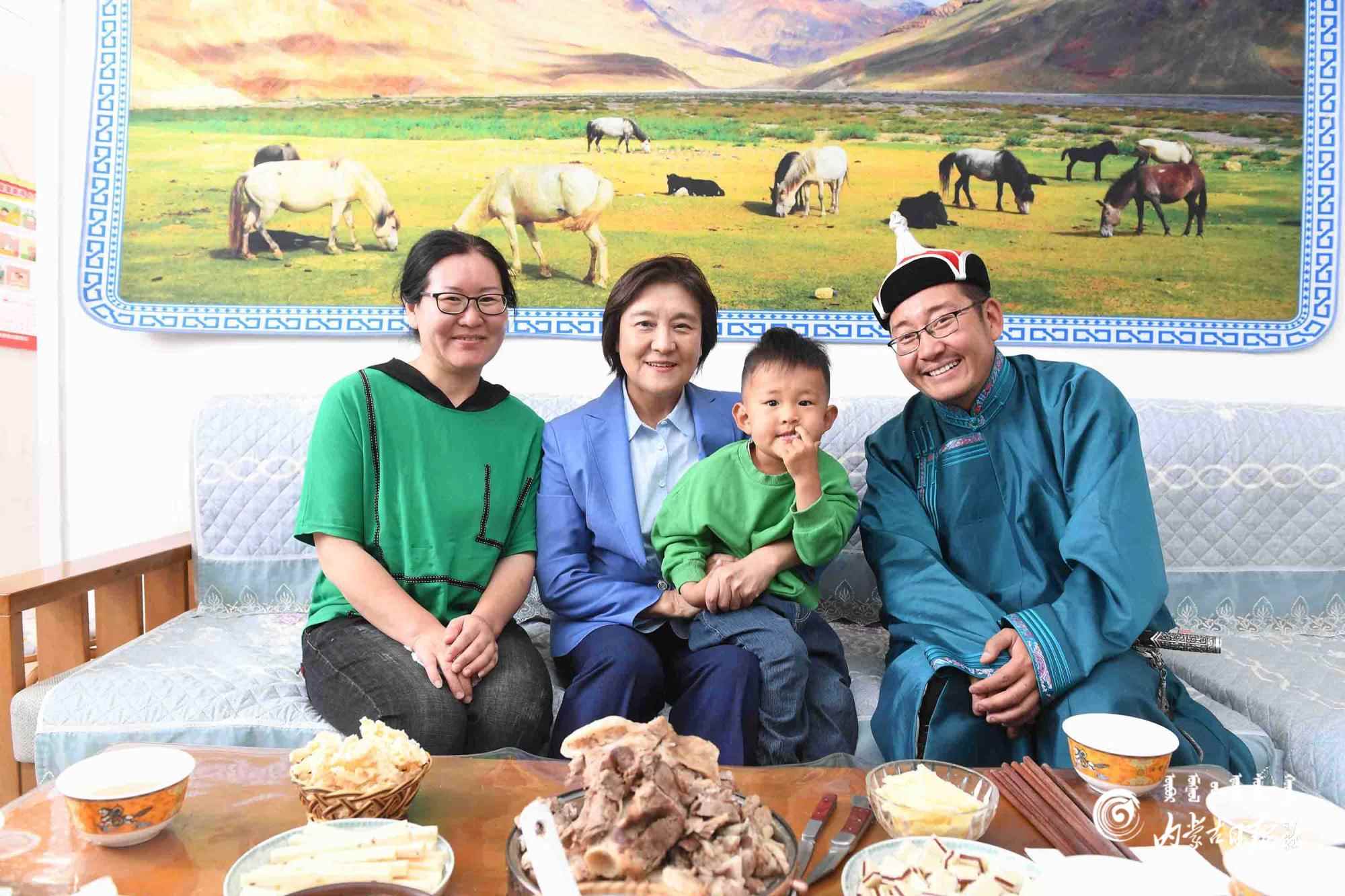 6月8日,自治區(qū)黨委副書記、自治區(qū)主席布小林在巴彥淖爾市烏拉特中旗調(diào)研,她來到希日朝魯嘎查牧戶呼斯勒家走訪,并與他們一家合影留念。內(nèi)蒙古日?qǐng)?bào)社融媒體記者 韓卿立攝