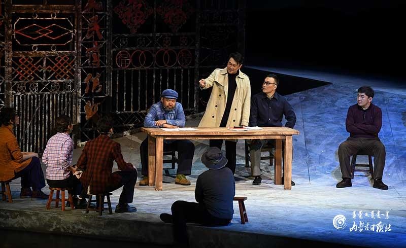 參演《紅手印》的都是來自草原的蒙古族演員,不僅要完成漢語的臺詞,還要熟練自然地講出大量內蒙古西部方言對白?!皩τ谠拕⊙輪T來說,臺詞功底太重要了。為了練好方言,我們好多演員早起練功的時候嘴里都念念有詞地說著西部方言?!毖輪T烏仁朝魯門說。他扮演的新扎木村主任令人印象深刻,一個一心想帶百姓致富卻屢遭失敗的老黨員形象?!爸氨硌輾v史題材的話劇大多是從影像和資料了解人物,這部戲的題材貼近觀眾們的現(xiàn)實生活,必須接地氣才能得到認可。我通過寫人物小傳的方式,深挖村主任的人物個性和從失望到燃起希望的內心世界,讓觀眾能夠認可這個形象。”烏仁朝魯門說。