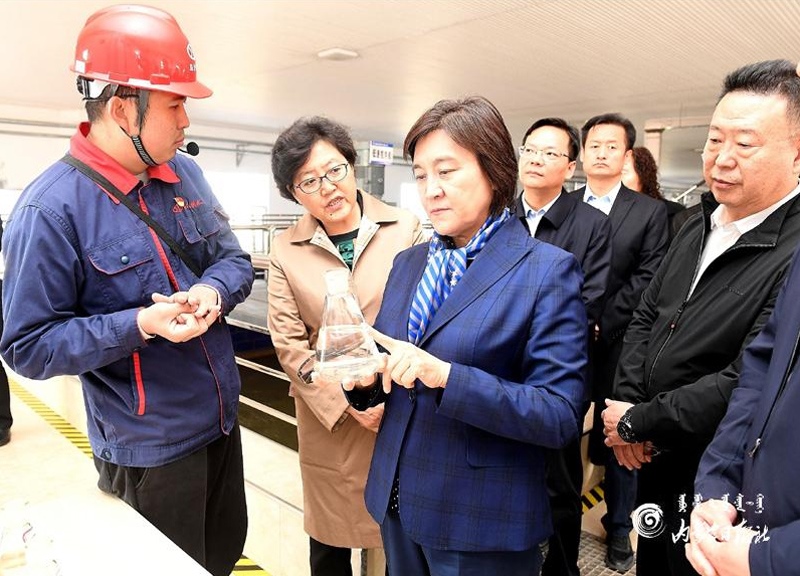 布小林十分關心沿黃地區(qū)的水資源節(jié)約集約高效利用和生態(tài)保護建設。她來到烏海市綠色生態(tài)農(nóng)業(yè)產(chǎn)業(yè)園,走進綠農(nóng)永勝農(nóng)民專業(yè)合作社陽光大棚葡萄基地,詳細了解葡萄種植需水和高效節(jié)水設施的使用情況;在烏海市啟源供水有限公司,實地查看凈水工藝流程及針對黃河水特點采取的處理措施。布小林指出,我區(qū)沿黃地區(qū)大多水資源匱乏,生態(tài)保護和經(jīng)濟社會發(fā)展面臨水資源短缺的剛性約束。抓好水資源節(jié)約集約高效利用,是推進黃河流域生態(tài)保護和高質(zhì)量發(fā)展的重中之重。要牢固樹立節(jié)水意識,堅持以水定城、以水定地、以水定人、以水定產(chǎn),合理規(guī)劃人口、城市和產(chǎn)業(yè)發(fā)展,大力發(fā)展節(jié)水產(chǎn)業(yè)和技術,實施全社會節(jié)水行動,推動用水方式由粗放向節(jié)約集約轉變。要大力發(fā)展循環(huán)經(jīng)濟,結合技術改造和產(chǎn)品更新?lián)Q代,組織實施重大節(jié)水和水循環(huán)利用示范工程,提高水資源重復利用率。
