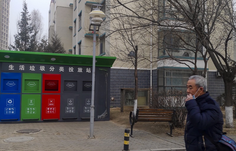 1月20日,呼和浩特市一名居民在政府投放進小區(qū)的生活垃圾分類投放站前走過。呼和浩特市是自治區(qū)唯一入選的全國首批實施生活垃圾強制分類的46個重點城市之一。根據(jù)要求,2019年底,全市公共機構(gòu)和中小學(xué)幼兒園全部推行垃圾分類,到2020年底,垃圾回收利用率將達到35%以上。分布在全市各小區(qū)的可回收垃圾智能分類箱依托移動互聯(lián)網(wǎng)、大數(shù)據(jù)、物聯(lián)網(wǎng)等方式,通過信息化手段,從垃圾分類宣傳、投遞、收集、處理等方面著手,對垃圾分類各個環(huán)節(jié)進行智能化管理,以積分激勵的形式逐步培養(yǎng)轄區(qū)居民垃圾分類的好習(xí)慣。