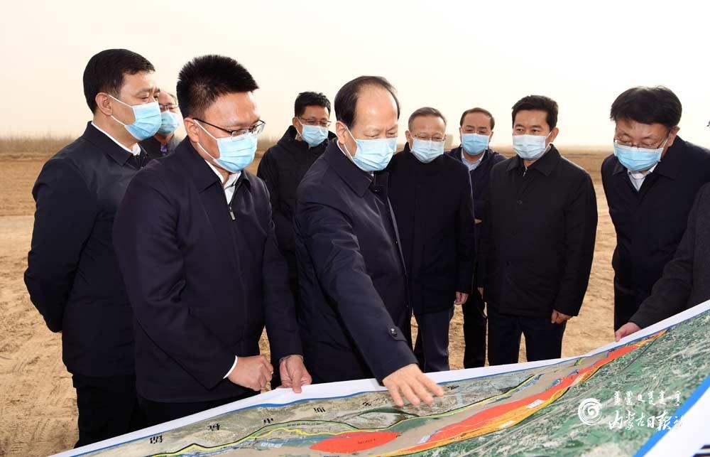 3月16日,自治區(qū)黨委書記、人大常委會(huì)主任石泰峰來(lái)到巴彥淖爾市臨河區(qū)雙河鎮(zhèn)富河村,察看了解黃河河道整治情況。內(nèi)蒙古日?qǐng)?bào)社融媒體記者袁永紅攝