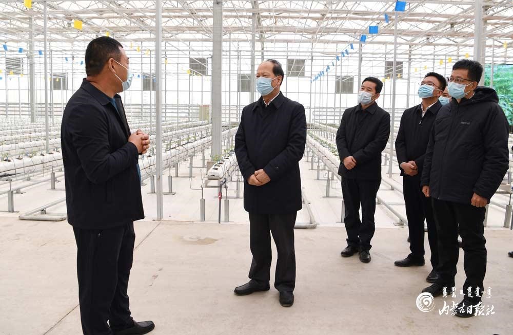 3月16日,自治區(qū)黨委書記、人大常委會(huì)主任石泰峰來(lái)到巴彥淖爾市臨河區(qū)鮮農(nóng)農(nóng)業(yè)科技園區(qū),走進(jìn)智能聯(lián)棟溫室,了解現(xiàn)代農(nóng)業(yè)運(yùn)營(yíng)情況。內(nèi)蒙古日?qǐng)?bào)社融媒體記者袁永紅攝