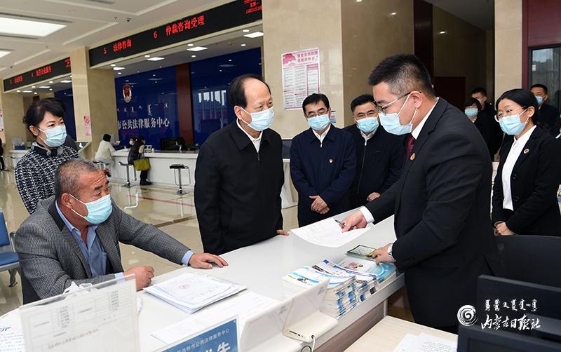 3月29日下午,自治區(qū)黨委書記、人大常委會主任石泰峰在呼和浩特市公共法律服務(wù)中心,了解司法系統(tǒng)開展教育整頓和法律援助等情況。內(nèi)蒙古日報社融媒體記者 袁永紅 攝