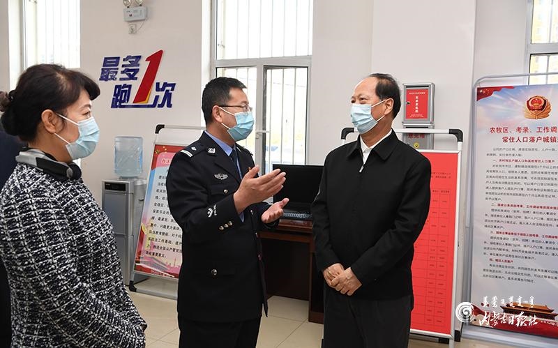 3月29日下午,自治區(qū)黨委書記、人大常委會主任石泰峰在呼和浩特市賽罕區(qū)公安分局巧報派出所,了解公安系統(tǒng)開展教育整頓落實情況。內(nèi)蒙古日報社融媒體記者 袁永紅 攝