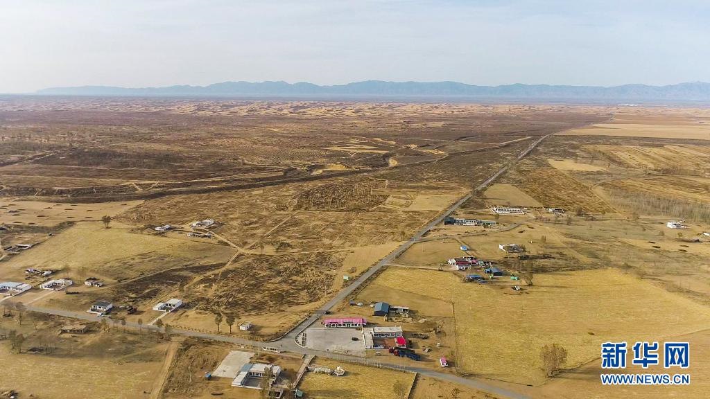 這是位于庫(kù)布其沙漠邊緣的內(nèi)蒙古達(dá)拉特旗官井村(4月3日攝,無人機(jī)照片)。新華社記者 張晟 攝