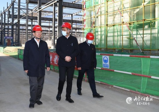 深秋將盡,土右旗新型工業(yè)園區(qū)新特能源高純多晶硅項目施工現(xiàn)場依然熱火朝天,平均每天都有數(shù)千名工人加班加點施工作業(yè)。石泰峰一走進項目工地,就被這里如火如荼的建設場景所感染。他認真聽取園區(qū)建設、項目實施情況介紹,詳細了解智能綠色工廠建設、低碳循環(huán)經(jīng)濟產(chǎn)業(yè)鏈布局等情況。得知項目開工以來僅用3個多月時間就完成絕大部分基建工程任務、進入設備安裝階段,石泰峰欣慰地說,工作推進有力度,項目建設才會有速度,只有實打實地干才能見到這樣的成效。他勉勵新特能源公司“行如其名”,把更多具有“新”和“特”的優(yōu)勢產(chǎn)業(yè)布局到內(nèi)蒙古,積極引進發(fā)展低能耗、低排放、高附加值的產(chǎn)業(yè)項目,為促進地方經(jīng)濟高質(zhì)量發(fā)展貢獻力量。在雙良硅材料公司、金力永磁公司、大地熊永磁科技公司、杉杉科技公司、華鉞實業(yè)公司和萬科奧運冰雪中心,石泰峰走進工地、車間、展廳,與企業(yè)負責人深入交流,詢問企業(yè)對地方營商環(huán)境的感受和評價??吹礁鱾€項目都在抓進度、趕工期,推進速度快、成效好,石泰峰給予充分肯定。他指出,一個地區(qū)的營商環(huán)境好不好,不是政府說了算,而是市場主體說了算,主要看企業(yè)愿意不愿意來投資,企業(yè)來了以后項目推進得快不快、建設得好不好。他對當?shù)馗刹空f,只有我們有誠心、有決心,企業(yè)投資發(fā)展才會有信心。要持續(xù)用力抓好優(yōu)化營商環(huán)境工作,把服務保障企業(yè)運行和項目建設作為重中之重,及時研究解決企業(yè)反映的困難和問題,切實為企業(yè)提供全方位全周期的優(yōu)質(zhì)高效服務。