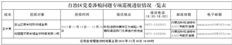據(jù)悉,自治區(qū)黨委巡視組現(xiàn)場巡視時(shí)間為40天左右,巡視期間設(shè)立專門值班電話、郵政信箱、電子郵箱等。巡視組受理信訪時(shí)間截至2021年12月20日。根據(jù)巡視工作條例及相關(guān)規(guī)定,巡視組主要受理糧食購銷領(lǐng)域的相關(guān)問題反映,重點(diǎn)是黨員干部涉糧方面的違紀(jì)違法問題。其他不屬于巡視受理范圍的信訪問題,將按規(guī)定轉(zhuǎn)有關(guān)部門認(rèn)真處理。