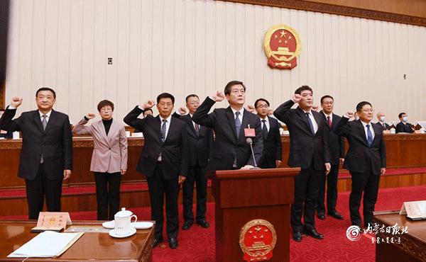 12月14日上午,自治區(qū)十三屆人大常委會(huì)第三十二次會(huì)議舉行了憲法宣誓儀式。自治區(qū)黨委書記、人大常委會(huì)主任石泰峰主持并監(jiān)誓。圖為新任職人員在依法進(jìn)行憲法宣誓。 內(nèi)蒙古日?qǐng)?bào)社融媒體記者 袁永紅 攝