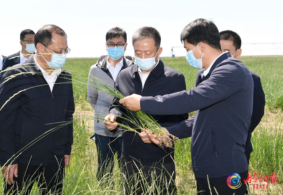 6月18日,自治區(qū)黨委書記孫紹騁在呼倫貝爾市陳巴爾虎旗羊草擴繁基地調(diào)研。內(nèi)蒙古日報社融媒體記者 袁永紅 攝