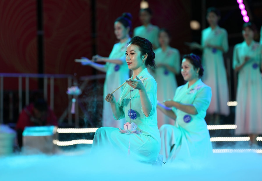 晚會(huì)在群舞《盛世歡歌》中拉開序幕,《民族融合》《國風(fēng)秋韻》和《璀璨之夜》3個(gè)篇章,歌手烏蘭圖雅、豪圖、敖源等為大賽助力演出,精彩的歌舞表演、時(shí)尚的服裝走秀,為現(xiàn)場觀眾帶來一場視聽盛宴。小鎮(zhèn)姑娘和包頭市民齊聚一堂,共享榮耀時(shí)刻,在大合唱《包頭歡迎你》中,頒獎(jiǎng)晚會(huì)落下帷幕,第二屆內(nèi)蒙古小鎮(zhèn)姑娘大賽圓滿收官。