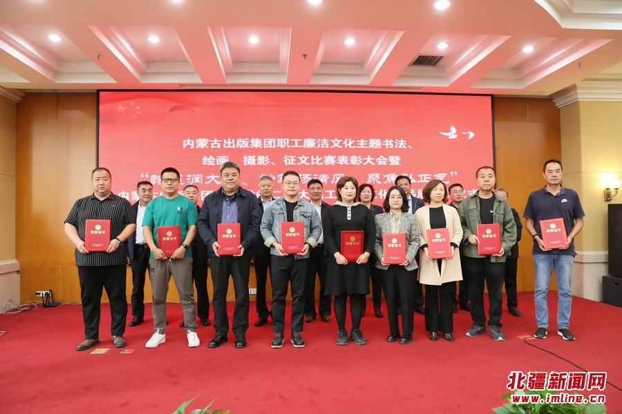 北疆新聞網(wǎng)、北疆新聞APP、北疆云消息(記者 張楊)9月22日,內(nèi)蒙古出版集團(tuán)職工廉潔文化主題書(shū)法、繪畫(huà)、攝影、征文表彰大會(huì)暨“翰墨潤(rùn)大德、妙筆揚(yáng)清風(fēng)、聚焦弘正氣”內(nèi)蒙古出版集團(tuán)迎接黨的二十大職工廉潔文化作品展開(kāi)展儀式在集團(tuán)二樓舉行。自治區(qū)紀(jì)委監(jiān)委駐黨委宣傳部紀(jì)檢監(jiān)察組二級(jí)巡視員聶榮峰,集團(tuán)黨委書(shū)記、董事長(zhǎng)雙龍和出版集團(tuán)在家領(lǐng)導(dǎo)班子成員、在呼各單位班子成員、集團(tuán)總部全體、各單位獲獎(jiǎng)?wù)叽淼葏⒓颖碚么髸?huì)并觀看展出,集團(tuán)黨委副書(shū)記王富主持表彰大會(huì)。