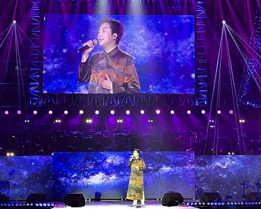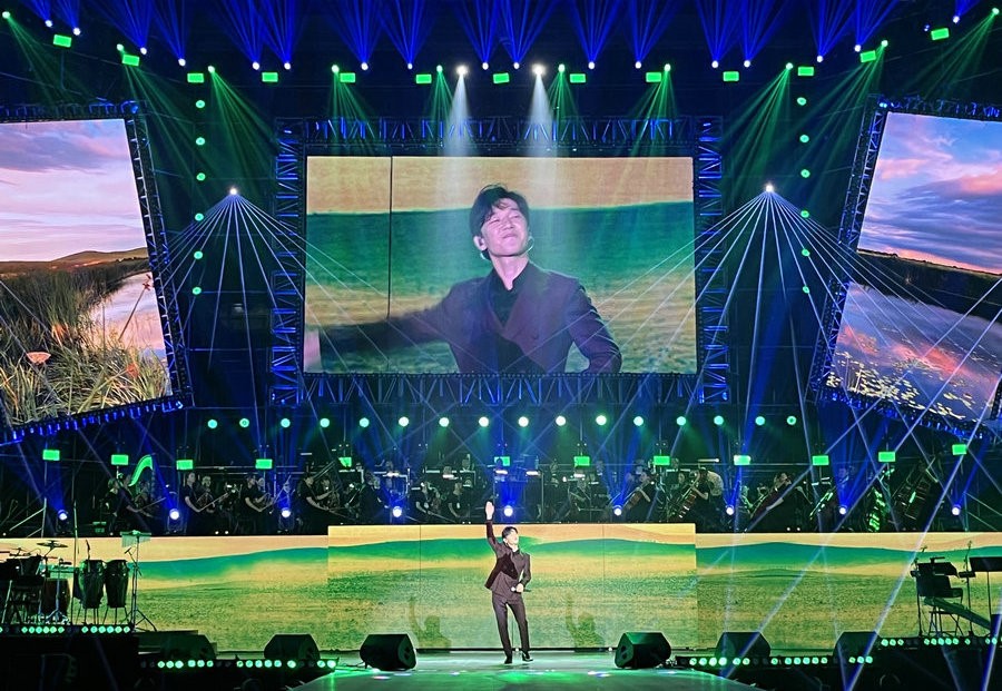 李玉剛的一首《剛好遇見你》贏得現(xiàn)場熱烈掌聲,如潮水般的掌聲久久不息,李玉剛向觀眾席深深鞠躬。他激情地說,這是他和呼和浩特的緣分,希望再次相會。隨后他送上架起友誼橋梁之歌《青城不老》。