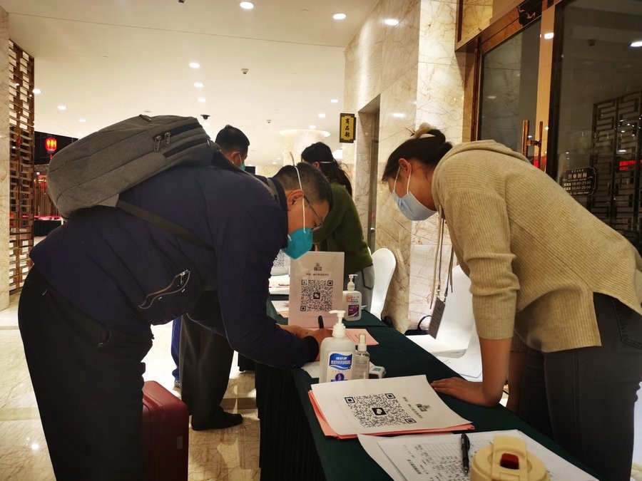 在駐地報到處,政協(xié)委員們有序領取相關材料,認真辦理有關手續(xù)。