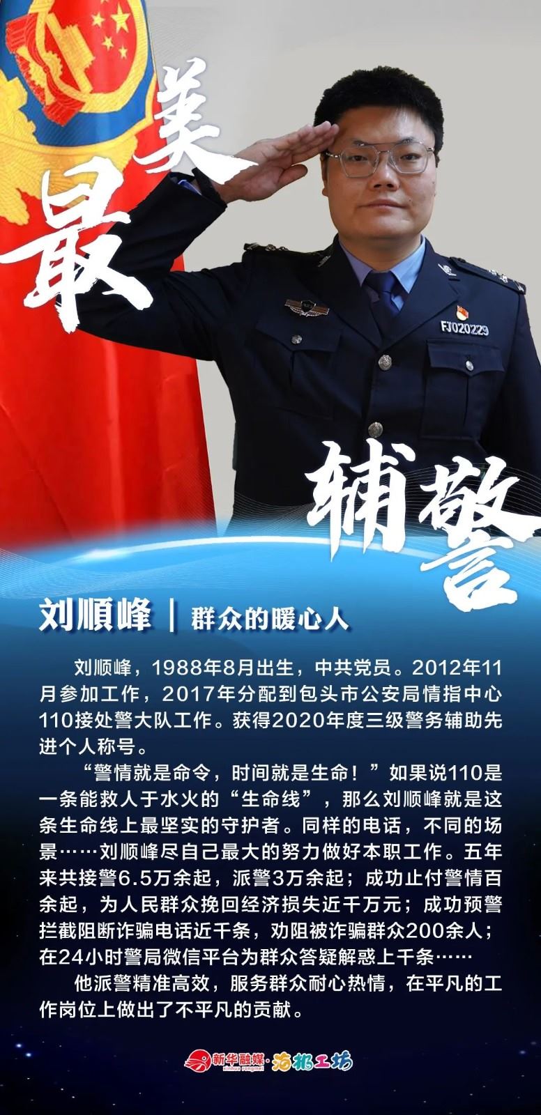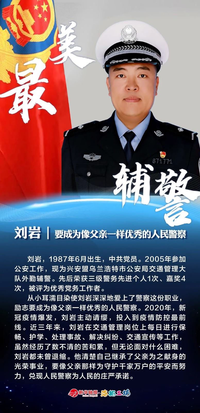 “不同的肩章,同樣的堅守……”在“感動北疆·最美輔警”獲獎者中,有堅守忠誠的安全衛(wèi)士郭一鳴,對癥下藥的老片兒警康華,服務群眾的熱心人辛永紅,校園安全的“護航員”李璐瑤,社區(qū)警務“信息化管家”鄭威,警務支撐“小能手”胡建業(yè),110接處警“活地圖”劉順峰,網(wǎng)上巡查“質(zhì)檢員”王昊,基層交通安全“好聲音”劉巖,一線“智慧公安”排頭兵張?zhí)睢?/strong>