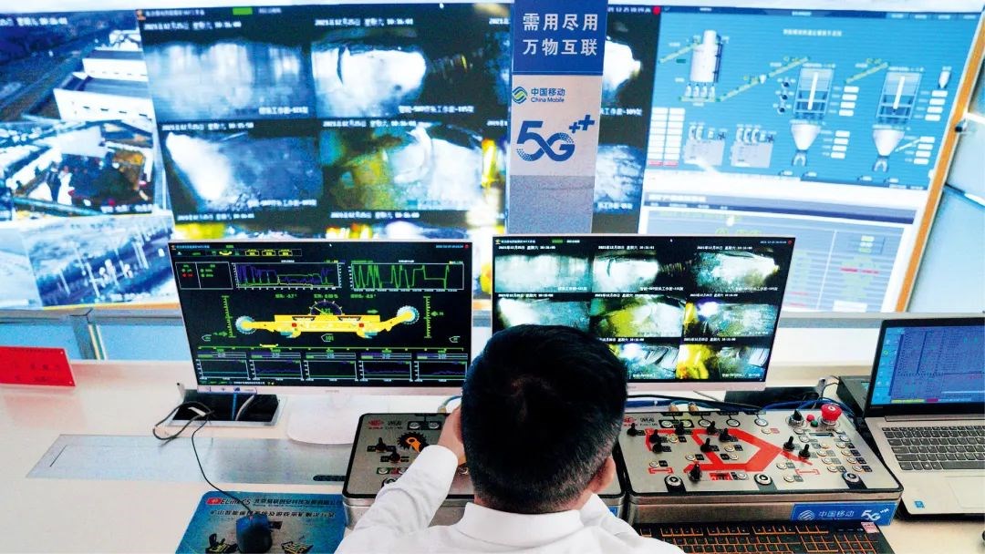 內(nèi)蒙古注重加快推進(jìn)傳統(tǒng)產(chǎn)業(yè)數(shù)字化轉(zhuǎn)型,積極進(jìn)行能源、化工等數(shù)字化智能化改造,目前已建成智能礦山126個。圖為國能神東煤炭集團(tuán)上灣煤礦智慧礦山遠(yuǎn)程操作采煤機(jī)。圖/王曉博攝