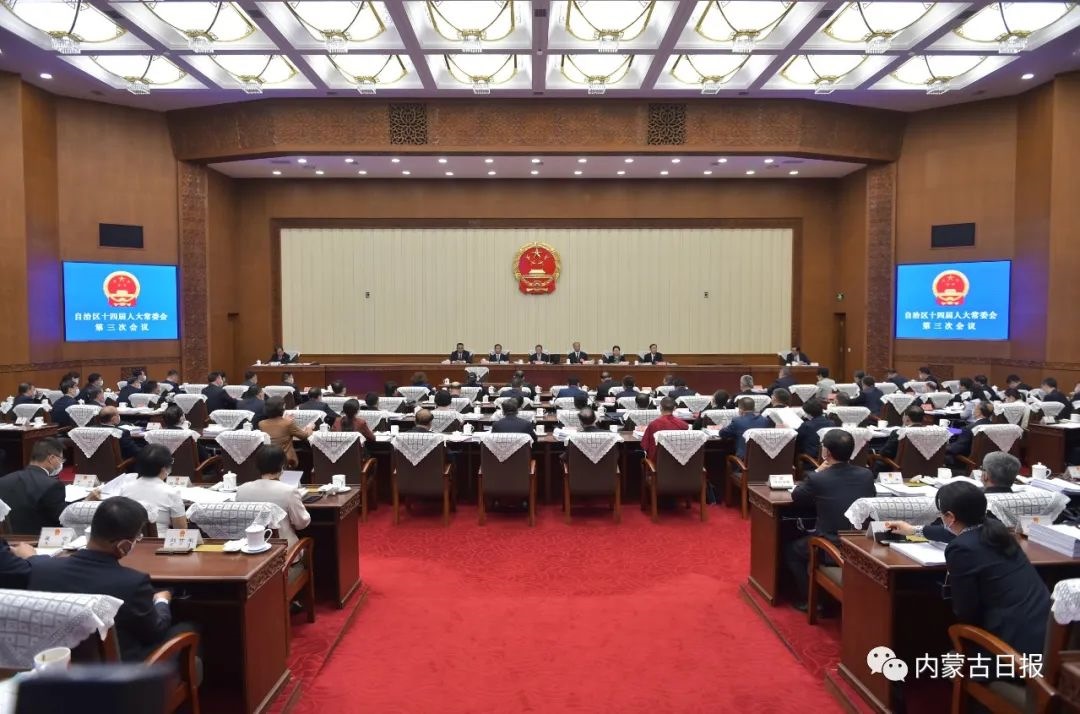 會(huì)議聽(tīng)取了自治區(qū)人大法制委員會(huì)副主任委員鄭錦春作的關(guān)于《內(nèi)蒙古自治區(qū)建設(shè)我國(guó)北方重要生態(tài)安全屏障促進(jìn)條例(草案)》審議結(jié)果的報(bào)告,法制委員會(huì)主任委員薩仁作的關(guān)于《內(nèi)蒙古自治區(qū)筑牢祖國(guó)北疆安全穩(wěn)定屏障促進(jìn)條例(草案)》審議結(jié)果的報(bào)告;自治區(qū)人大常委會(huì)法制工作委員會(huì)主任張作厚作的關(guān)于《內(nèi)蒙古自治區(qū)建設(shè)國(guó)家重要能源和戰(zhàn)略資源基地促進(jìn)條例(草案)》的說(shuō)明,關(guān)于《內(nèi)蒙古自治區(qū)建設(shè)國(guó)家重要農(nóng)畜產(chǎn)品生產(chǎn)基地促進(jìn)條例(草案)》的說(shuō)明,關(guān)于《內(nèi)蒙古自治區(qū)建設(shè)國(guó)家向北開(kāi)放重要橋頭堡促進(jìn)條例(草案)》的說(shuō)明;自治區(qū)人大監(jiān)察和司法委員會(huì)主任委員羅虎在作的關(guān)于《內(nèi)蒙古自治區(qū)人民代表大會(huì)常務(wù)委員會(huì)關(guān)于加強(qiáng)新時(shí)代檢察機(jī)關(guān)法律監(jiān)督工作的決定(草案)》的說(shuō)明;自治區(qū)財(cái)政廳廳長(zhǎng)鞠樹文作的《關(guān)于調(diào)整內(nèi)蒙古自治區(qū)礦泉水資源稅計(jì)征方式及稅額標(biāo)準(zhǔn)》的說(shuō)明;自治區(qū)人大財(cái)經(jīng)委員會(huì)主任委員馮玉臻作的關(guān)于檢查《中華人民共和國(guó)統(tǒng)計(jì)法》和《內(nèi)蒙古自治區(qū)統(tǒng)計(jì)管理?xiàng)l例》實(shí)施情況的報(bào)告。