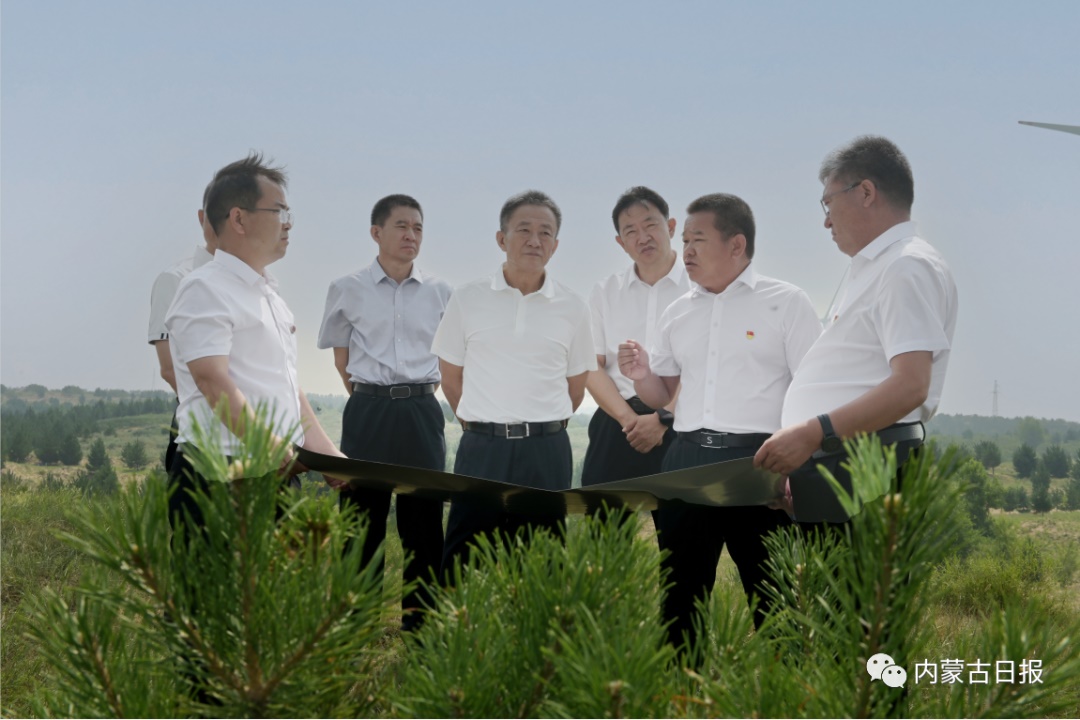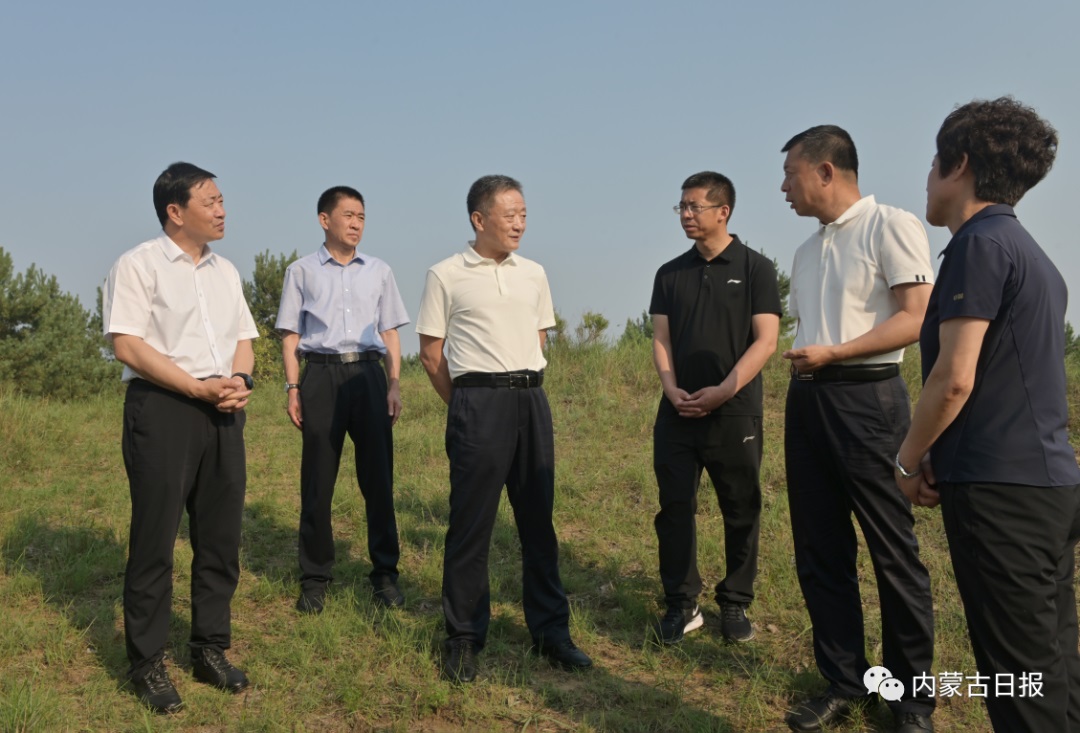 7月11日,自治區(qū)黨委書記孫紹騁在庫倫旗生態(tài)保護和修復治理工程庫倫鎮(zhèn)項目區(qū)瓦房嘎查調研正在治理區(qū)情況。內蒙古日報社融媒體記者馬建荃攝