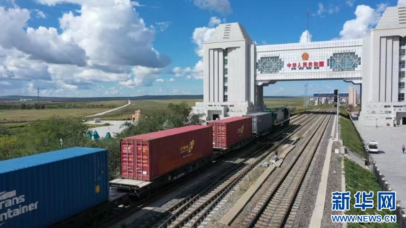 中歐班列駛出滿洲里國門。新華網發(fā) (李新軍 攝)