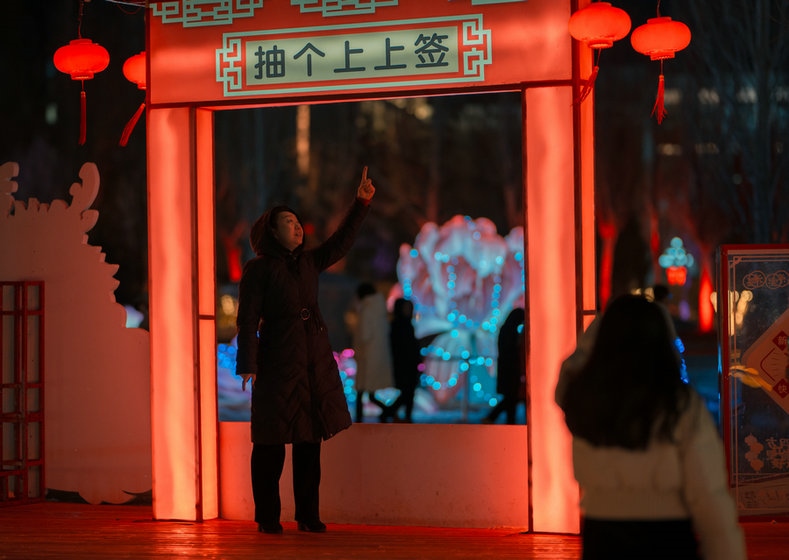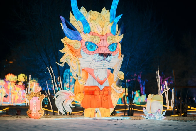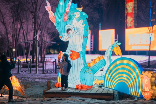 呼和浩特市民曹女士說:“今年49歲,正好本命年,已經(jīng)拍了很多照片和視頻了,這些龍的造型很喜人,更賞心悅目,家就住附近,沒事就來逛一逛,心情都會變得更好了,還能和孩子一起學習生僻字,了解中國傳統(tǒng)文化,很期待正月十五的燈謎,到時候還會來,和孩子一起猜燈謎、長知識?!?/p>