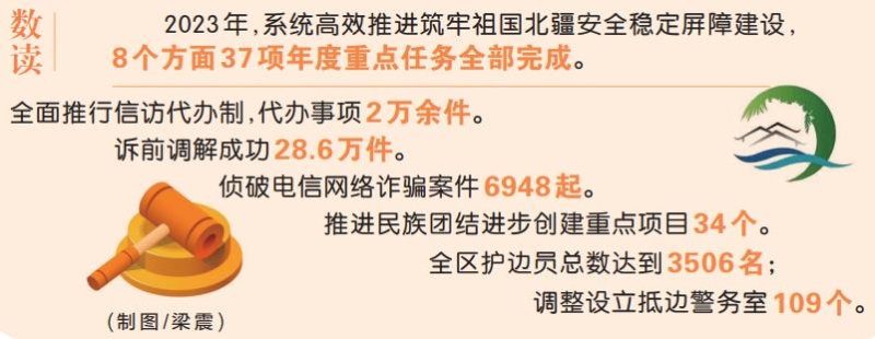 ——制定自治區(qū)本級專項(xiàng)應(yīng)急預(yù)案47項(xiàng),深入開展重大事故隱患專項(xiàng)排查整治2023行動,排查整改問題隱患48.76萬項(xiàng)。全面推行信訪代辦制,代辦事項(xiàng)2萬余件,初次信訪事項(xiàng)一次性化解率達(dá)到97%。深化訴源治理,建立“一站式”矛盾調(diào)解中心1094個(gè),訴前調(diào)解成功28.6萬件。常態(tài)化開展掃黑除惡斗爭,嚴(yán)厲打擊各類違法犯罪活動,偵破電信網(wǎng)絡(luò)詐騙案件6948起,命案現(xiàn)案全破并破獲積案82起。