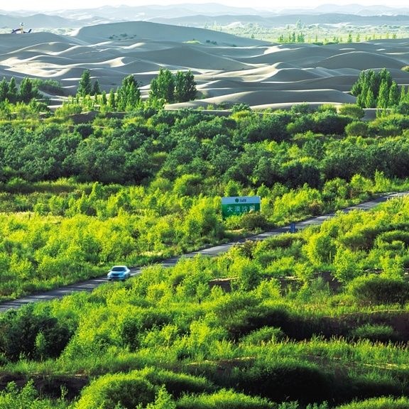 在與沙的博弈中,內(nèi)蒙古探索出許多行之有效的模式和路子,為全國乃至全球荒漠化防治提供了“中國方案”、貢獻了“中國智慧”。庫布其沙漠治理模式被巴黎氣候大會標舉為“中國樣本”,樹立了生態(tài)治理的國際典范。如今,庫布其治沙模式、技術和成果已經(jīng)走向世界,為全球3600萬平方公里的荒漠化土地治理和無數(shù)受荒漠化威脅的人們貢獻著“方案”與“智慧”。阿拉善盟摸索出一套適合極度干旱地區(qū)飛播造林的技術模式,打破了年降水量200毫米以下地區(qū)屬于飛播造林“禁區(qū)”的“魔咒”,為其他同等氣候條件下的沙漠治理提供了示范。向沙漠要效益,沙漠變資源,沙海變“藍海”,內(nèi)蒙古保護生態(tài)與改善民生步入良性循環(huán)……