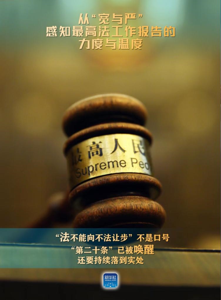新華社北京3月9日電(記者高潔、馬知遙、袁秋岳)3月8日,最高人民法院工作報(bào)告提請(qǐng)十四屆全國(guó)人大二次會(huì)議審議。報(bào)告中列舉了不少案例,有的案件從嚴(yán)從重判決,有的從寬或無罪判決。讓我們從“寬與嚴(yán)”感知報(bào)告的力度與溫度。