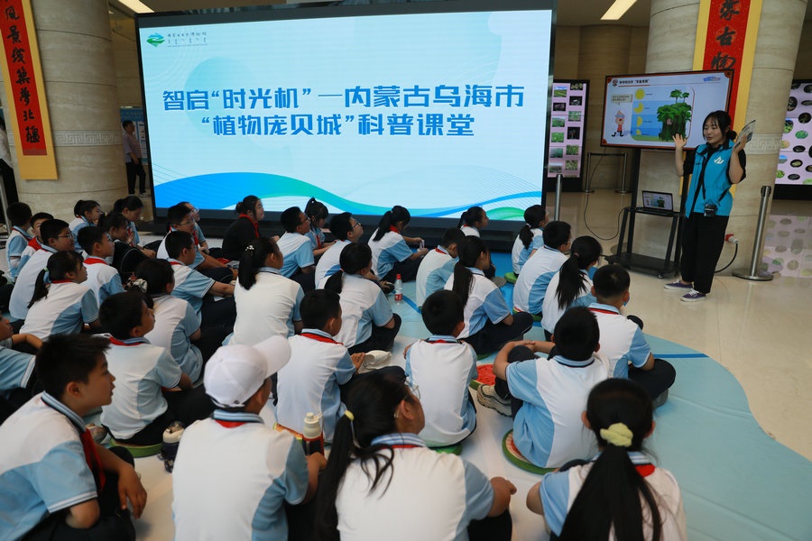 公益科普活動(dòng)中,邀請(qǐng)大學(xué)路小學(xué)的學(xué)生參與以內(nèi)蒙古烏海市“植物龐貝城”前沿科研成果為依托開發(fā)的智啟“時(shí)光機(jī)”科普課程;開展化石形成的動(dòng)手體驗(yàn)活動(dòng),在做中教,在做中學(xué),以“勞”啟智,“動(dòng)”促成長;進(jìn)行“自然+環(huán)保+藝術(shù)”環(huán)保服裝創(chuàng)新設(shè)計(jì)靜態(tài)展示,同公眾一起解讀設(shè)計(jì)師的服飾設(shè)計(jì)“密碼”;聆聽“小小講解員”的科普聲,在對(duì)壯美內(nèi)蒙古的講解中,植種初心,讓德育“自然”花開。