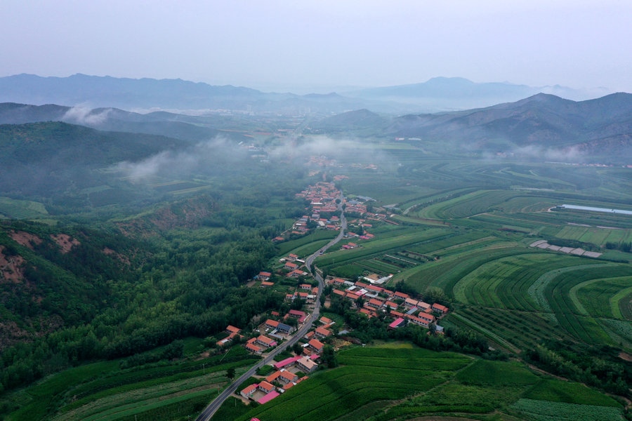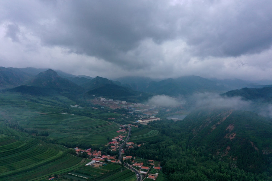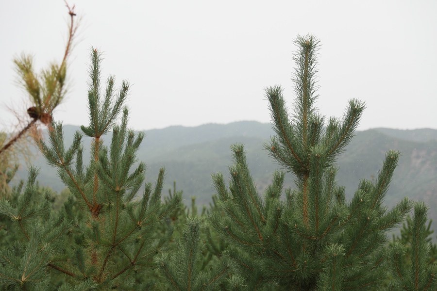 空中俯瞰細(xì)雨中的馬鞍山林場