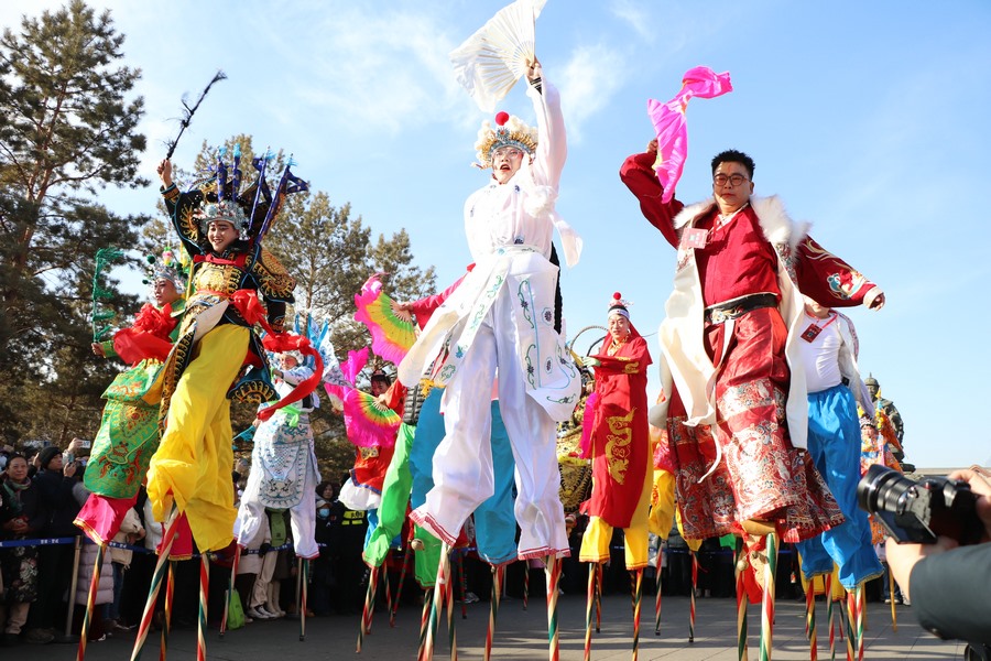 金花動情地分享了年輕時演出的經歷,“要扎根基層,所以我又回到了烏審旗。那時,我?guī)е⒆友莩觯以谇懊娉?,孩子在后面哭?!?br/>