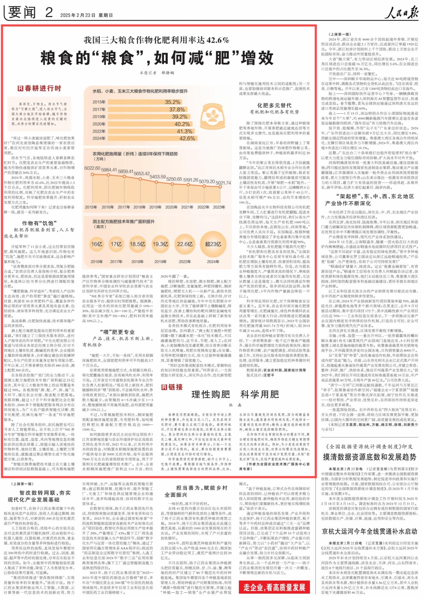 2025年2月23日,《人民日報》第2版刊發(fā)題為《糧食的“糧食”,如何減“肥”增效》的文章,其中報道了內(nèi)蒙古“測土配方施肥+種肥同播+膜下滴灌水肥一體化”技術(shù)模式。
