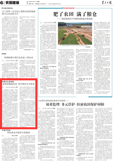2025年4月3日,《農民日報》第6版刊發(fā)題為《內蒙古扎魯特旗:加快鹽堿地改造 筑牢糧食安全根基》的文章,報道了近年來,內蒙古自治區(qū)通遼市扎魯特旗圍繞“向鹽堿地要糧,讓荒原變良田”的目標,加大鹽堿地治理力度,不斷挖掘鹽堿地開發(fā)利用價值,把工程措施、生物措施和化學改良措施有機結合起來,因地制宜、綜合治理,不斷拓展農業(yè)耕地資源,激活鹽堿地“潛在糧倉”資源,實現鹽堿地資源的系統改良和高效利用。