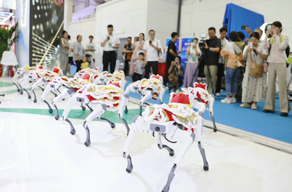 呼和浩特展區(qū)機(jī)器狗伴著愛(ài)樂(lè)樂(lè)團(tuán)的演奏翩翩起舞