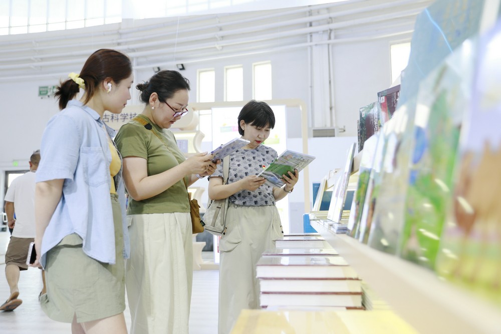 讀者在內(nèi)蒙古出版集團(tuán)展區(qū)閱讀圖書(shū)