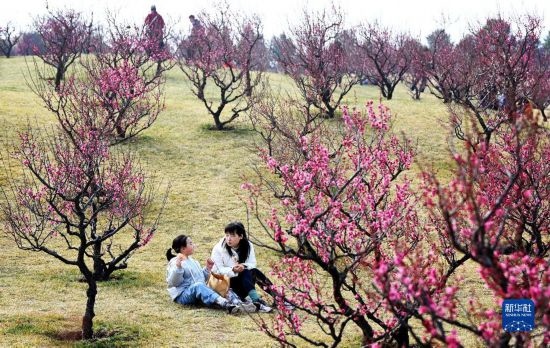 2月26日,游人在長安唐村梅園內(nèi)賞梅休閑。