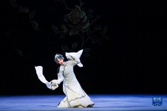 5月15日,演員在舞臺(tái)上表演黃梅戲《羅帕記》。