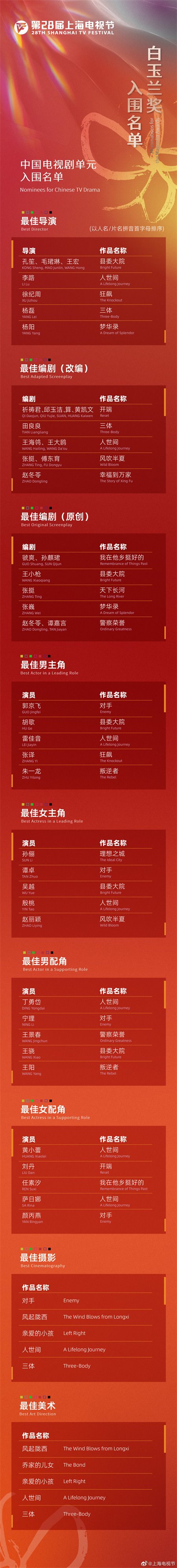 附:第28屆上海電視節(jié)白玉蘭獎(jiǎng)入圍名單