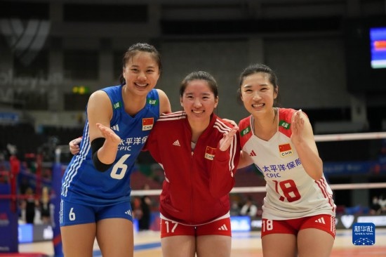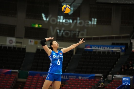 當(dāng)日,在日本名古屋舉行的2023世界女排聯(lián)賽分站賽中,中國隊以3比0戰(zhàn)勝德國隊。