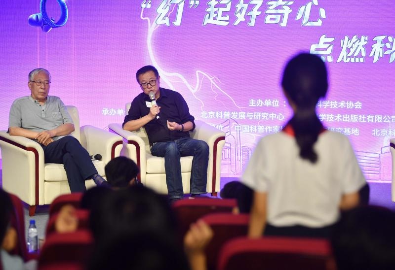 科幻有預(yù)言功能嗎?《流浪地球》中“冬眠”那樣的科幻技術(shù)會(huì)影響人類的發(fā)展方向嗎??jī)?yōu)秀科幻作品如何帶給讀者強(qiáng)烈的代入感?昨天,一場(chǎng)科幻大師與中學(xué)生之間的對(duì)話在中國(guó)科幻大會(huì)上演。作為中國(guó)科幻大會(huì)的重要組成部分,“首都青少年科幻嘉年華”在首鋼園和北京科學(xué)中心舉辦,其中的“大師對(duì)話”環(huán)節(jié)邀請(qǐng)著名科幻作家劉慈欣、王晉康,與第42屆北京青少年科技創(chuàng)新大賽科幻畫(huà)獲獎(jiǎng)?wù)呒鞍儆嗝袑W(xué)生進(jìn)行了科幻對(duì)話。