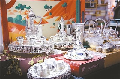 來自伊拉克的Hussein對桌上兩只憨態(tài)可掬的青釉小兔十分著迷。郭利芳則把玩著一只豐腴敦厚的陶瓷小羊:“這是伊拉克朋友自制的陶瓷作品,很有特色!”精致細膩的青釉小兔,與粗獷厚實的小羊羔,相映成趣。